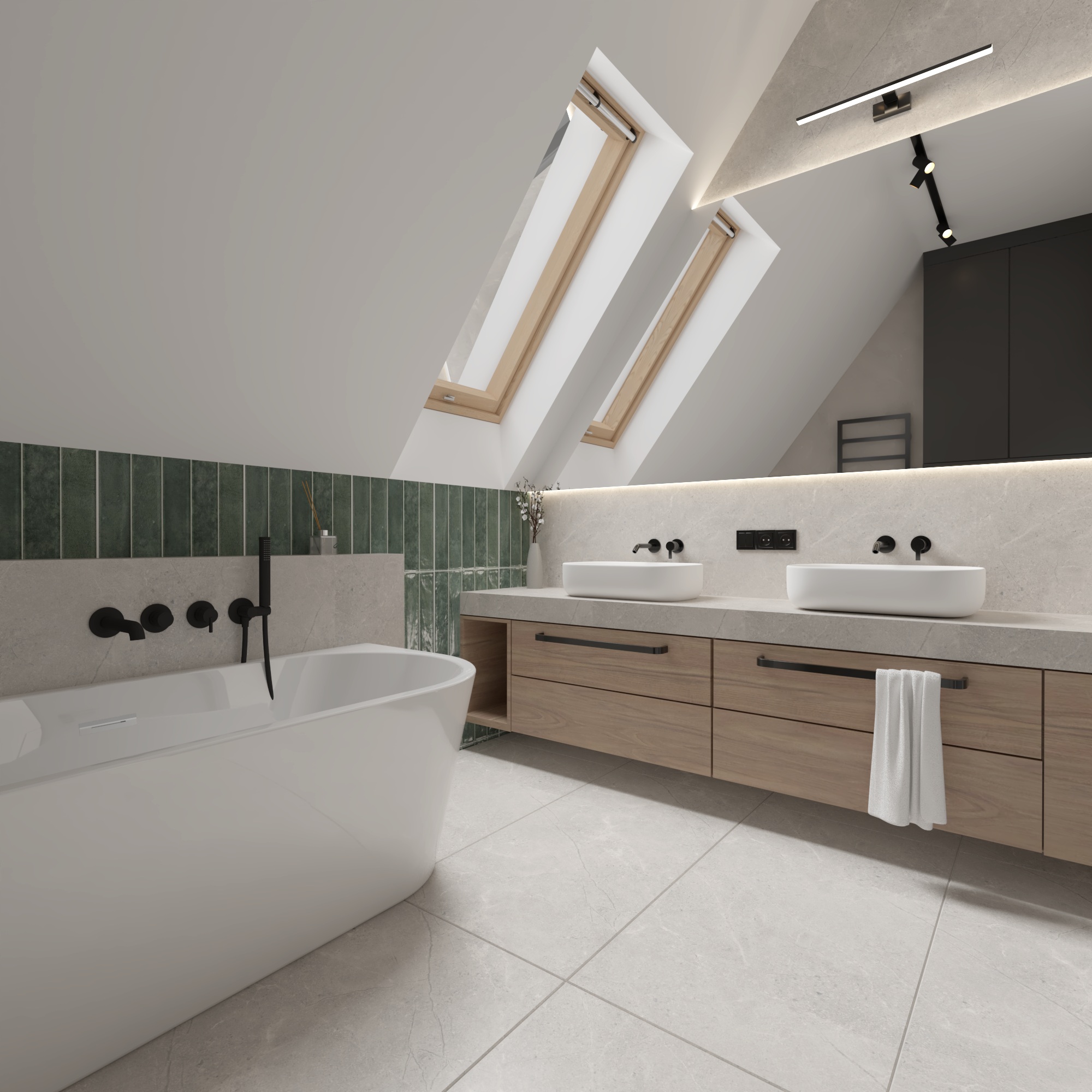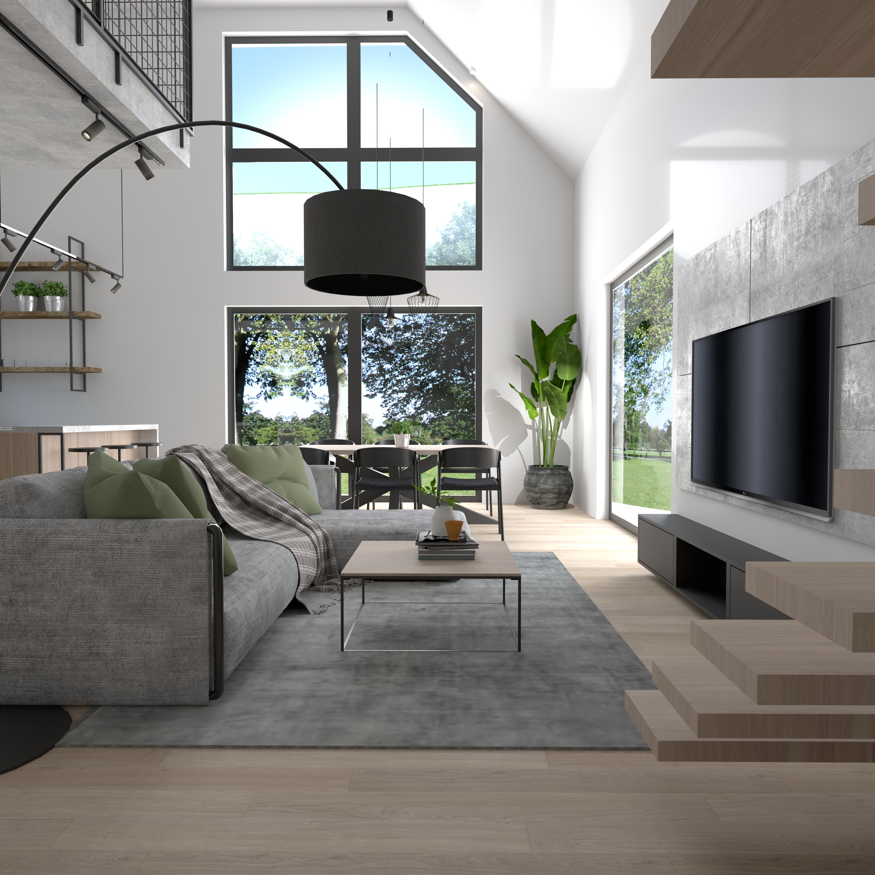 Realizacja projektu nowoczesnej stodoły w Polance Wielkiej wchodzi w kolejny, istotny etap. Po opracowaniu koncepcji łazienki skupiamy się na projektowaniu strefy dziennej – centralnej części domu, która integruje salon, jadalnię oraz kuchnię w jedną spójną i funkcjonalną przestrzeń.