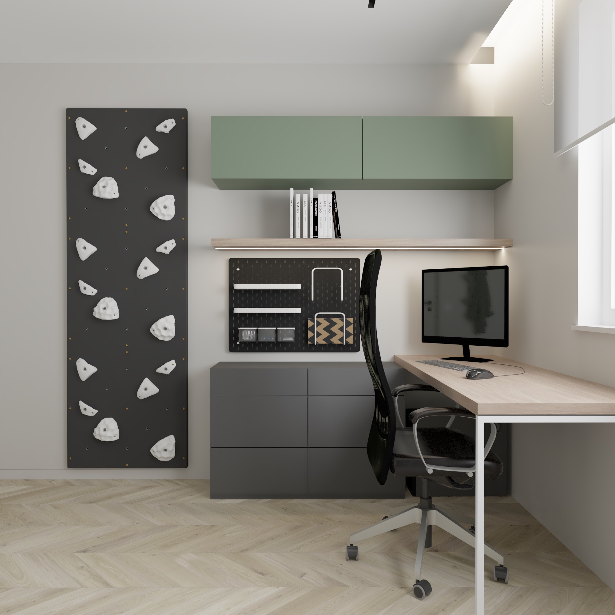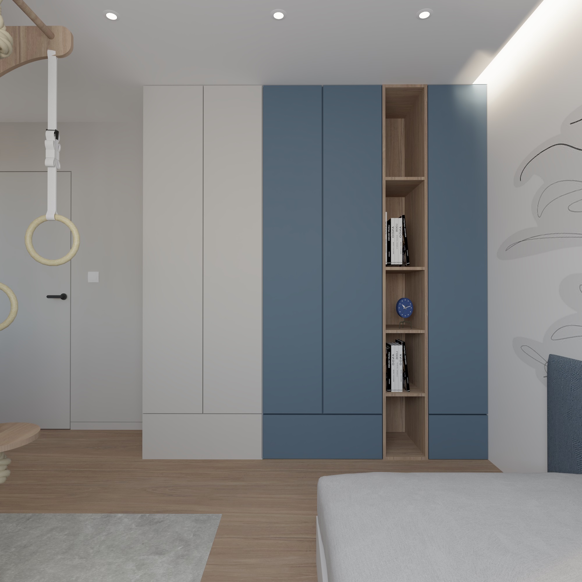 Projekt pokoju dziecięcego obejmował ergonomiczne rozwiązania, praktyczne systemy przechowywania oraz kolorystykę dopasowaną do wieku dziecka. Tworzymy indywidualne aranżacje pokoi dziecięcych, które rosną razem z dziećmi i odpowiadają na realne potrzeby rodzin.